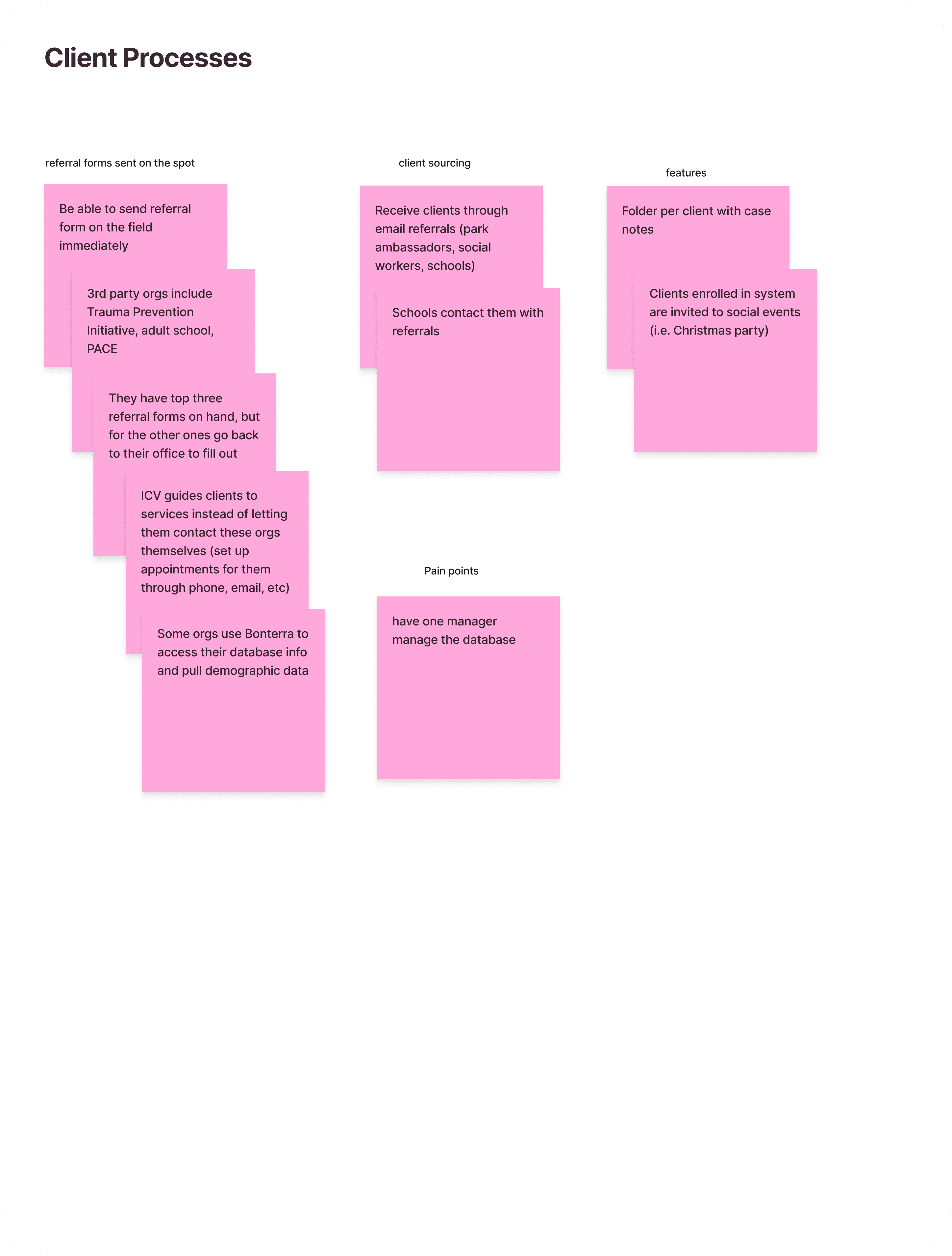 Through this exercise, we identified 3 core phases in ICV's client management process.
