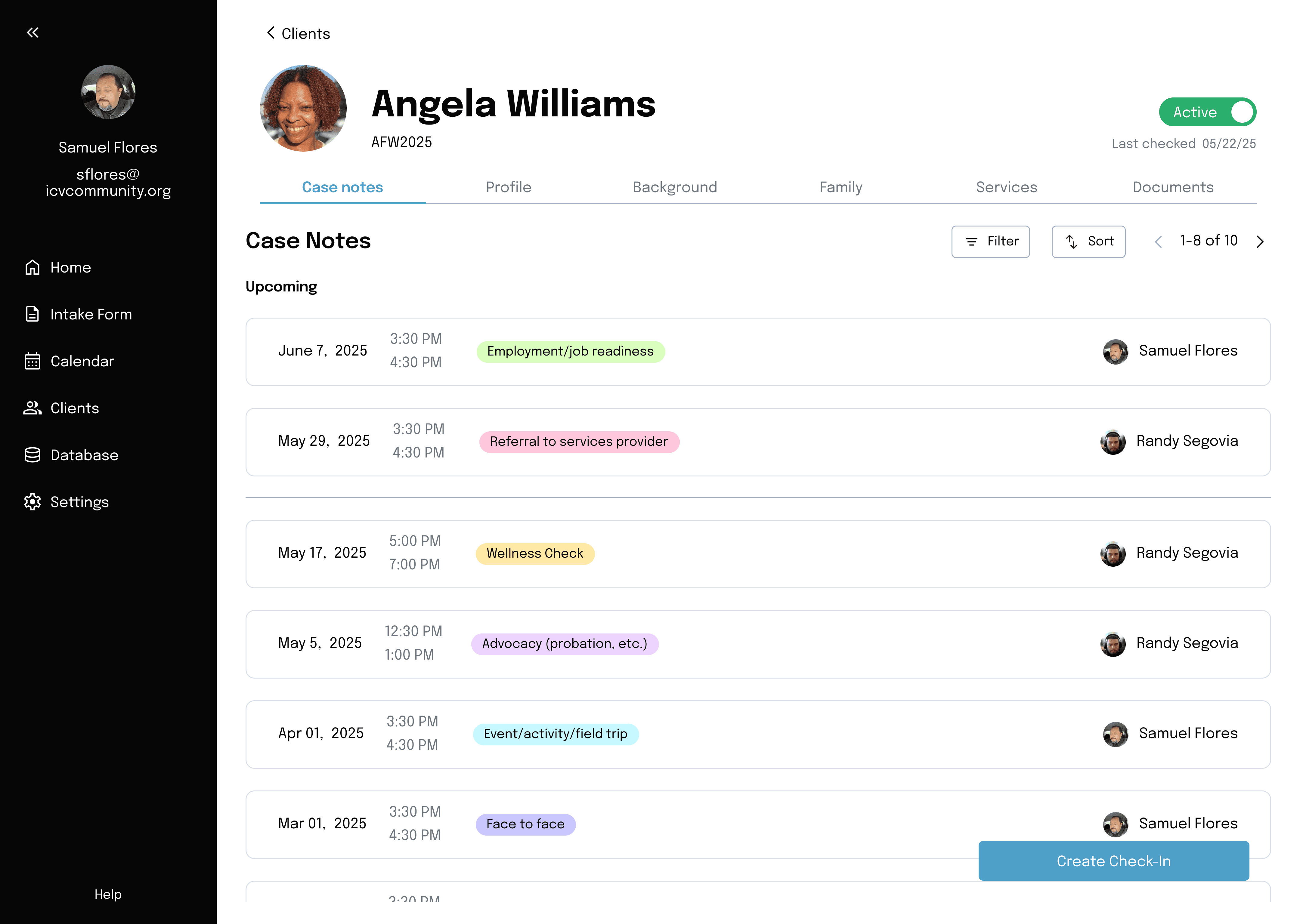 After incorporating feedback from ICV, we prioritized clearly labeled and filterable case notes reduced visual clutter over prominent upcoming check-ins.