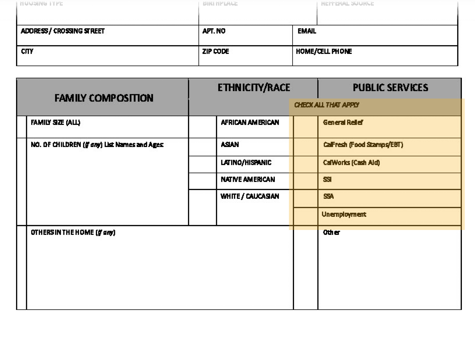 Intake form
