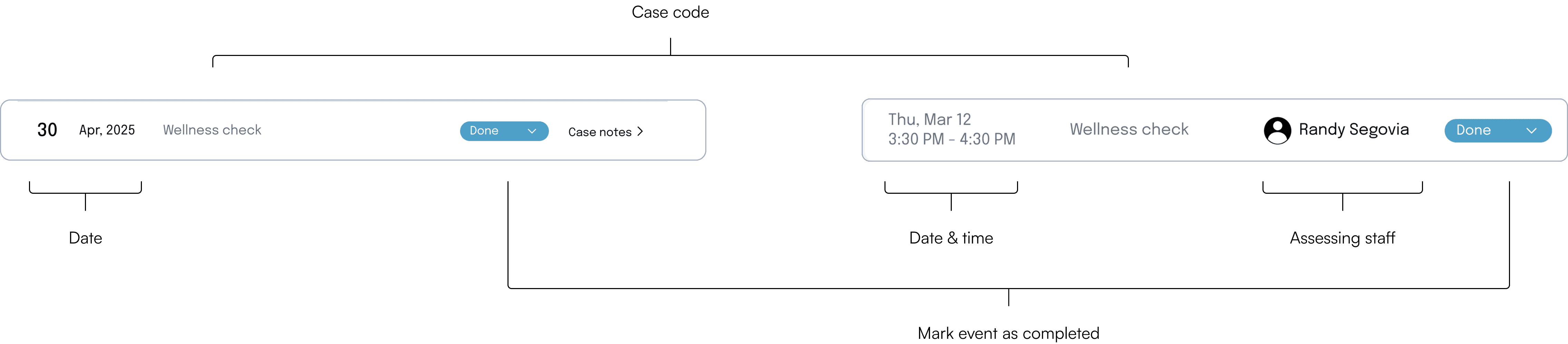 When designing how a case note row, I considered which information needed to be accessed frequently and how to effectively communicate it.