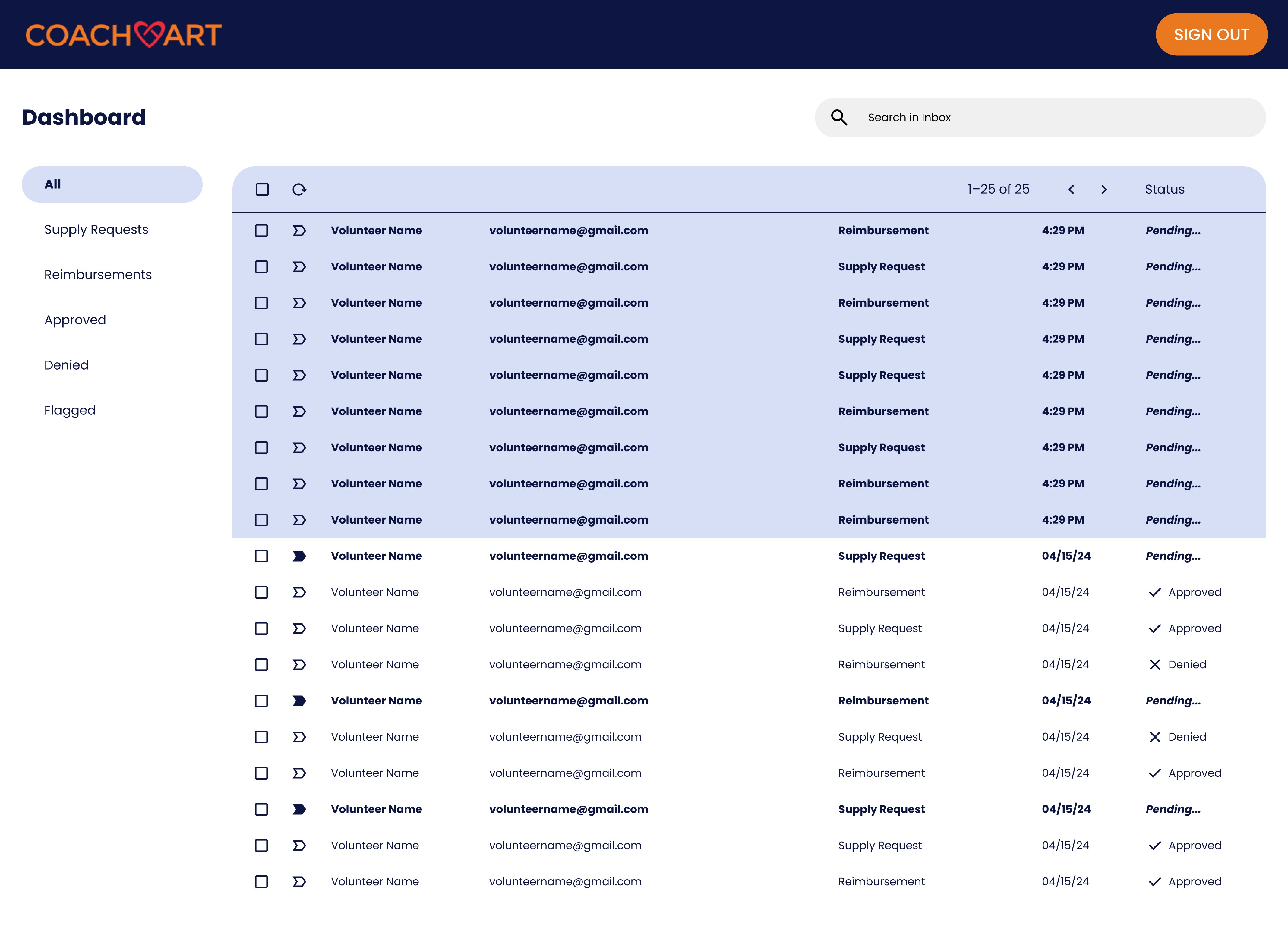 While designing the lofis, I focused on maintaining consistency and parallelism in volunteer flows to resolve the disconnection volunteers mentioned, ensuring our information architecture aligned with CoachArt’s existing processes, and documenting the user flow clearly to facilitate developer handoff.